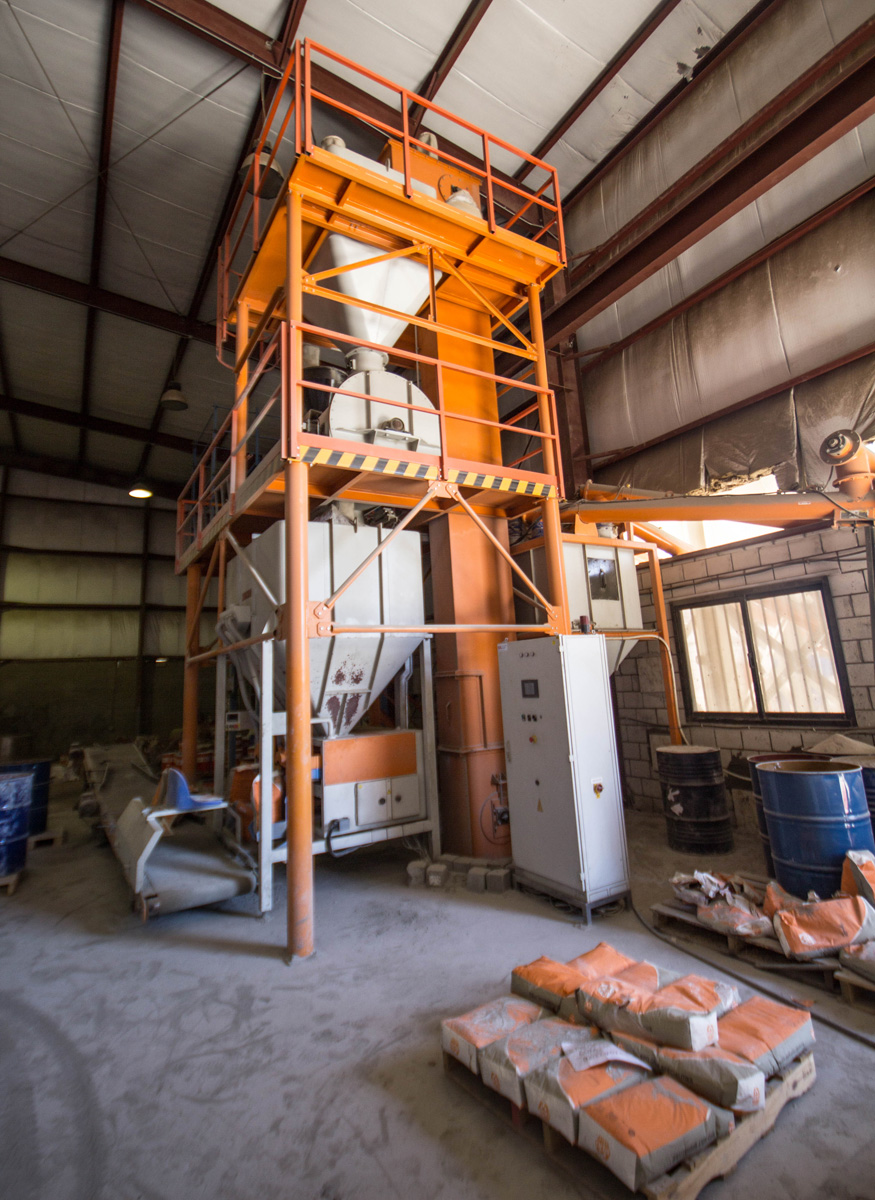 خط انتاج المواد الا سمنتية : ويعمل على انتاج المواد اللا صقة والمواد العازلة ومواد ا صلاح الخر سانة وبطاقة انتاجية تقدر ب 6 الاف طن